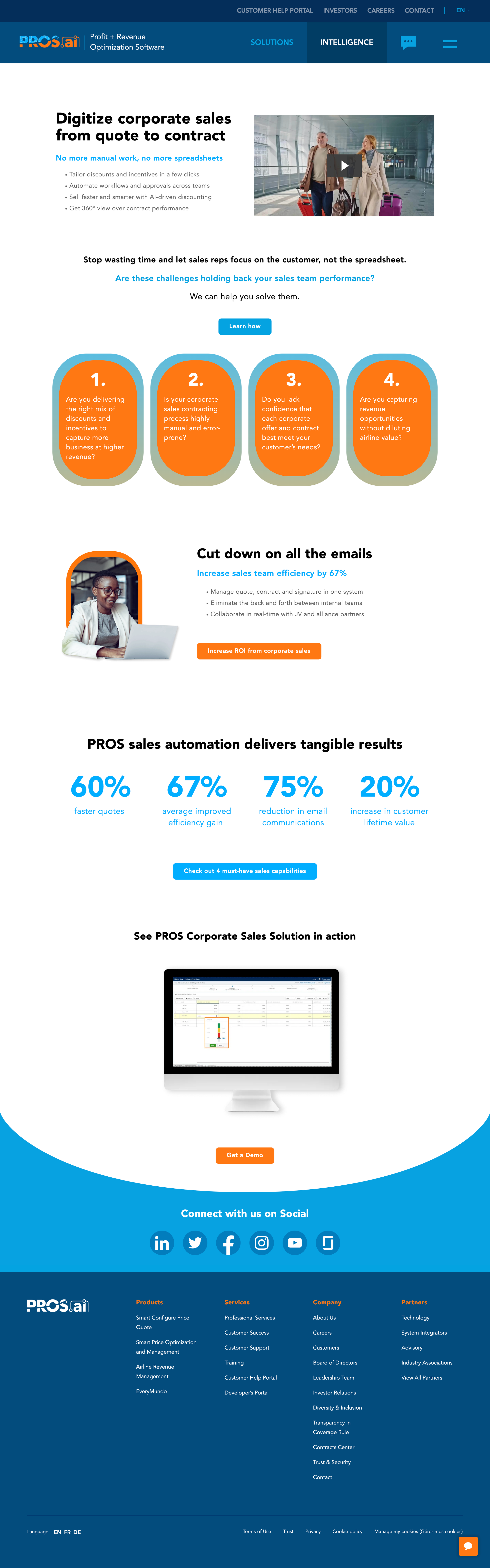 My team created custom landing pages specific to each prospect. Working alongside Sales and Customer Service teams, we delivered assets directly to decision makers across 30+ top tier airlines and low cost carriers. Campaign materials were only visible only to select airline prospects and not made public on pros.com.